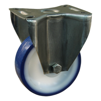 Eine Bockrolle aus Edelstahl hat eine Gabel aus Edelstahl. Die Gabel ist das Teil, zwischen dem das Rad (normalerweise aus Kunststoff) befestigt ist. Die Kugellager und Rollenlager sind ebenfalls aus Edelstahl. Die Edelstahl-Bockrollen sind daher hervorragend für den Außeneinsatz geeignet. Die Edelstahl-Bockrollen sind auch für chemische, saure und salzhaltige Umgebungen geeignet.