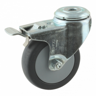 Lenkrolle Stahl, 75mm Durchmesser, TPE Lauffläche, Gleitlager, Totalfeststeller, Nachlauf
