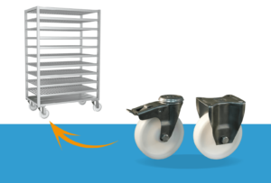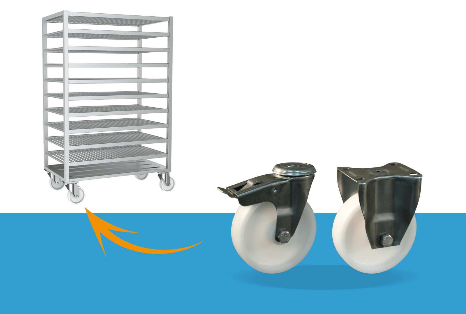 Sie können sich für lose Nylonräder entscheiden, die gute Wahl, wenn Sie nur das Rad ersetzen müssen und bereits einen Gabelkopf haben. Es gibt auch Nylon Bock- und Lenkrollen. Eine Nylon Bockrolle kann sich nicht drehen. Wenn Sie 4 Bockrollen unter Ihrer Anwendung haben, können Sie nur vorwärts und rückwärts fahren. Eine Lenkrolle kann sich drehen, so dass Sie mit Ihrer Anwendung lenken können. Nutzen Sie auch unsere Entscheidungshilfe, um dies zu simulieren.