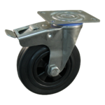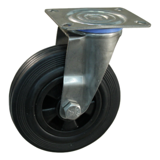 Bockrolle Edelstahl, 125mm Durchmesser, Gummi Lauffläche, Gleitlager, 154mm Bauhöhe