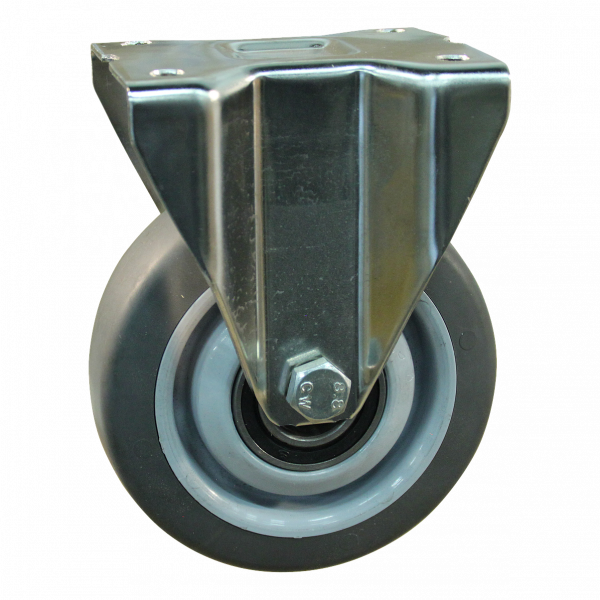 Bockrolle Edelstahl, 125mm Durchmesser, TPE Lauffläche, Kugellager Edelstahl, 155mm Bauhöhe