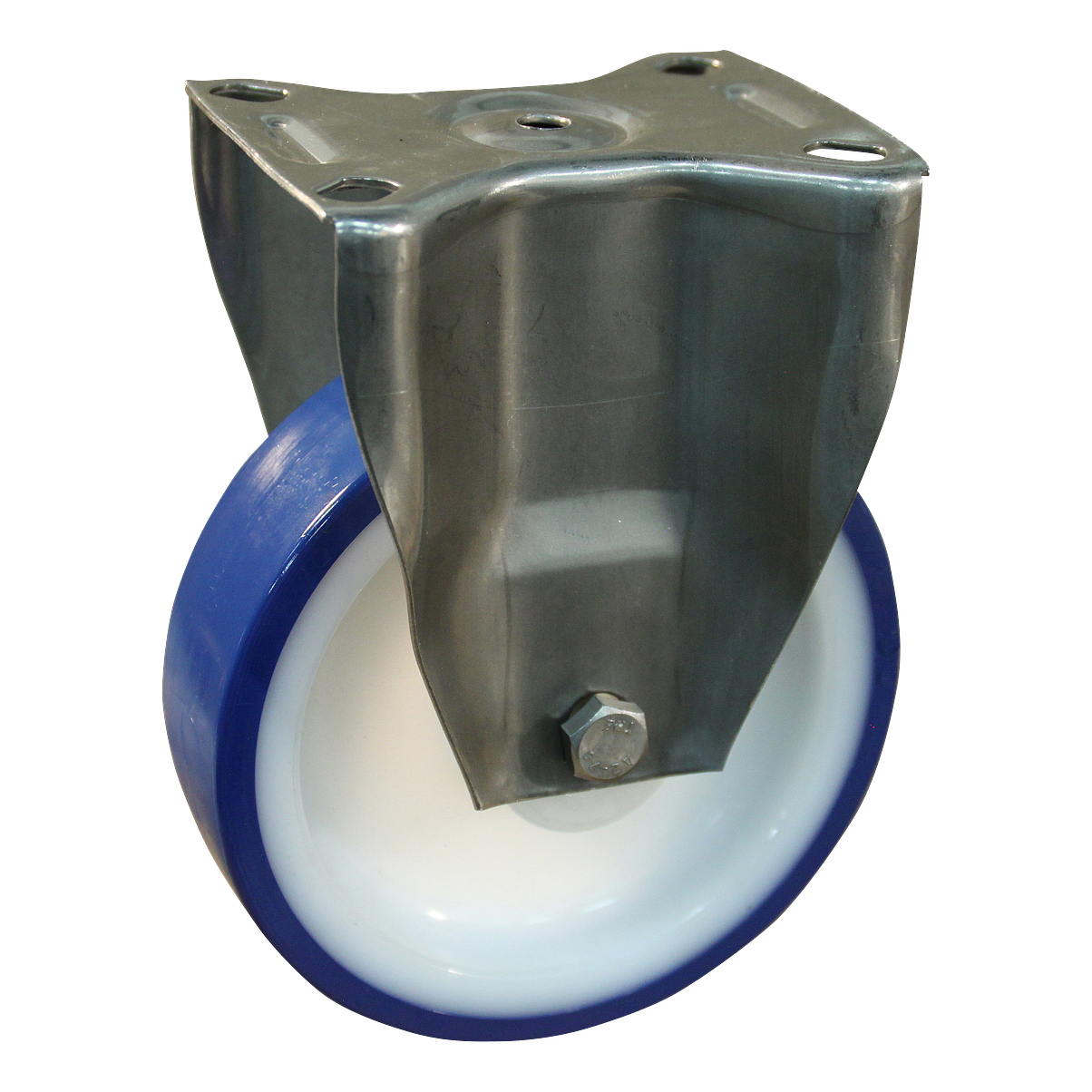 Bockrolle Edelstahl, 80mm Durchmesser, PU Lauffläche, Gleitlager, 108mm Bauhöhe