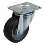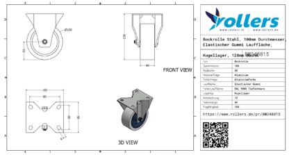 Dies ist eine Bockrolle aus Stahl. Die Bauhöhe ist 128 mm. Das Material der Felge ist Aluminium und der Lauffläche Elastischer Gummi (RAL 9005 Tiefschwarz). Das Rad hat einen Durchmesser von 100 mm und eine Breite von 40 mm. Die Nabenlänge beträgt 40 mm mit einem Achsloch von 15 mm. Das Rad hat eine Tragfähigkeit von 150 kilogram. Das Rad hat ein Kugellager als Lagerung. Dieses Produkt finden Sie in unseren Kategorien: Gummiräder, Rollbehälter Rollen, Müllcontainer Rollen, Bockrollen 150 kg, Bockrollen 100 mm, Transportrollen, Bockrollen.