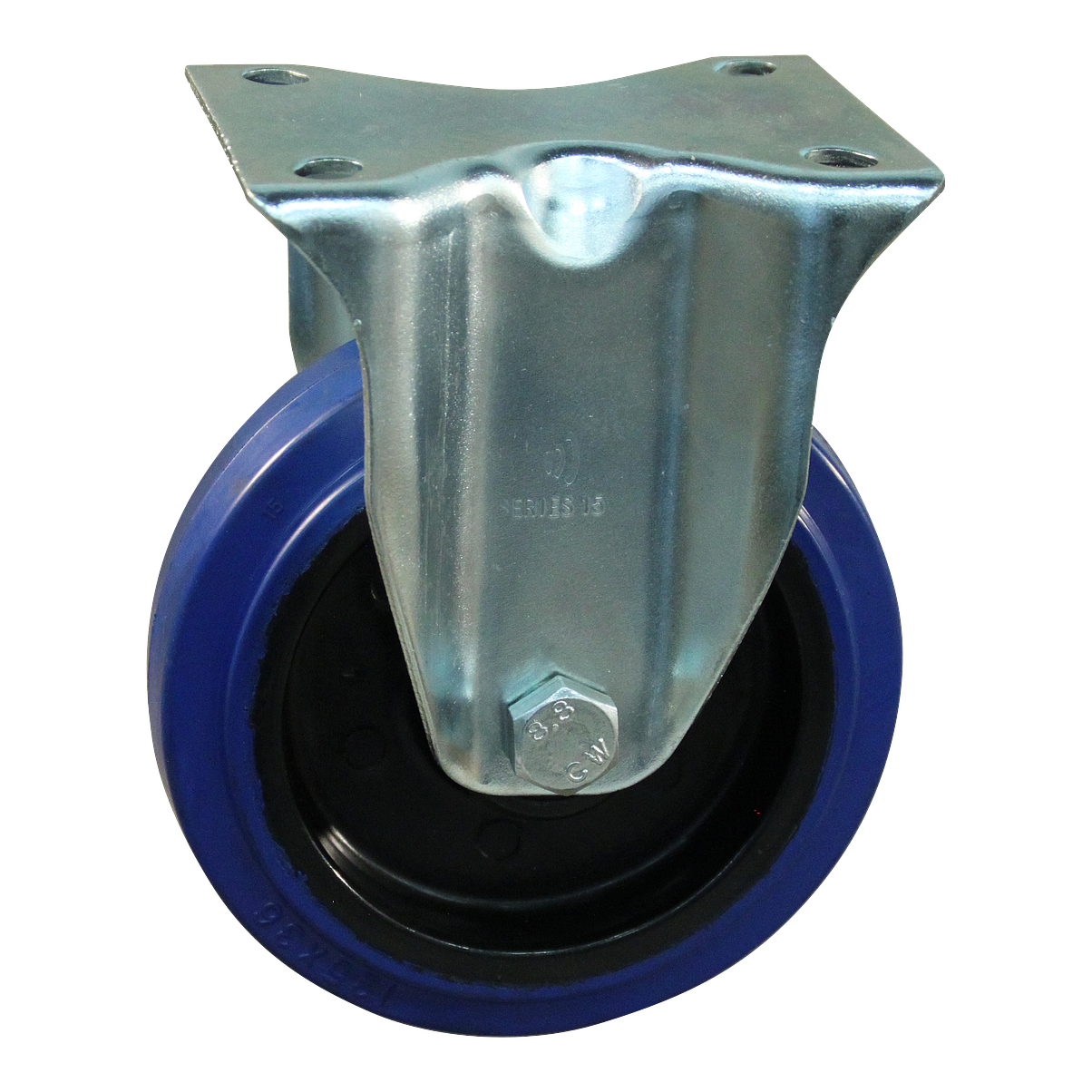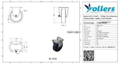 Dies ist eine Bockrolle mit einem Gabel aus Stahl. Die Bauhöhe ist 154 millimeter. Das Material der Felge ist Polyamid (Farbe RAL 9005 Tiefschwarz) und der Lauffläche Elastischer Gummi (RAL 5010 Enzianblau). Das Rad hat einen Durchmesser von 125 millimeter und eine Breite von 36 millimeter. Die Nabenlänge beträgt 50 millimeter mit einem Achsloch von 12 millimeter. Die Bockrolle hat eine Tragfähigkeit von 150 kilogram. Der Lagertyp: Rollenlager. Rollers.de hat dieses Produkt in die folgenden Kategorien eingeteilt: Flightcase-Räder, Gummiräder, Rollbehälter Rollen, Müllcontainer Rollen, Bockrollen 150 kg, Bockrollen 125 mm, Transportrollen, Bockrollen.