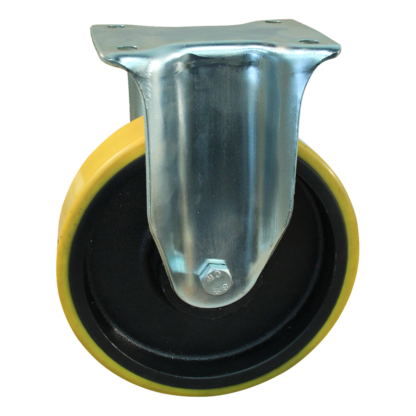Dies ist eine Bockrolle mit einem Gabel aus Stahl. Die Bauhöhe beträgt 238 millimeter. Die Felge besteht aus Gusseisen (Farbe RAL 9005 Tiefschwarz) und die Lauffläche aus PU (RAL 1005 Honiggelb ist die Farbe). Das Rad hat einen Durchmesser von 180 millimeter und eine Breite von 50 millimeter. Das Rad hat eine Tragfähigkeit von 900 kilo. Das Rad hat ein Kugellager als Lagerung. Dieses Produkt ist in unserem Shop in folgenden Kategorien erhältlich: Schwerlastbockrollen, Bockrollen 800 kg, Schwerlastrollen, PU Rollen, Bockrollen 180 mm, Polyurethan Rollen, Transportrollen, Bockrollen.