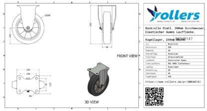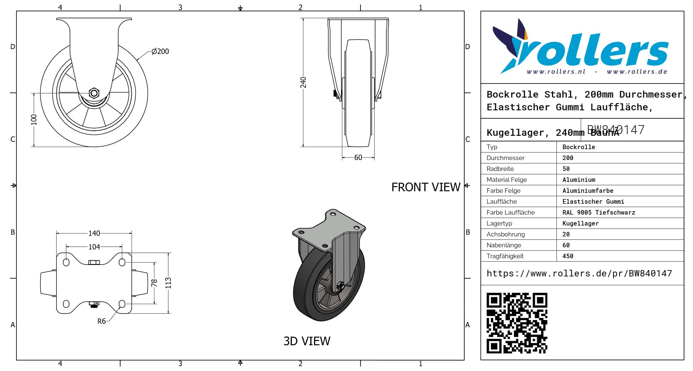 Dies ist eine Bockrolle mit einem Gabel aus Stahl. Die Rolle hat eine Bauhöhe von 240 mm. Die Felge besteht aus Aluminium und die Lauffläche aus Elastischer Gummi (RAL 9005 Tiefschwarz). Das Rad hat einen Durchmesser von 200 mm und eine Breite von 50 mm. Die Nabenlänge beträgt 60 mm mit einem Achsloch von 20 mm. Die Bockrolle hat eine Tragfähigkeit von 450 kilo. Das Rad hat ein Kugellager als Lagerung. Dieses Produkt ist in unserem Shop in folgenden Kategorien erhältlich: Gummiräder, Rollbehälter Rollen, Müllcontainer Rollen, Schwerlastbockrollen, Bockrollen 300 kg, Schwerlastrollen, Bockrollen 200 mm, Transportrollen, Bockrollen.