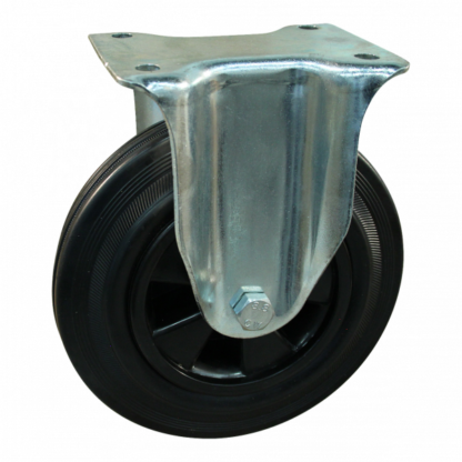 Diese Bockrolle hat eine Gabel aus Stahl. Die Rolle hat eine Bauhöhe von 280 millimeter. Die Felge besteht aus PP (RAL 9005 Tiefschwarz ist die Farbe) und die Lauffläche aus Gummi (schwarz). Das Rad hat einen Durchmesser von 250 millimeter und eine Breite von 60 millimeter. Die Nabenlänge beträgt 60 millimeter und die Achsbohrung hat einen Durchmesser von 20 millimeter. Die Tragfähigkeit beträgt 250 kilo. Das Rad hat ein Gleitlager als Lagerung.