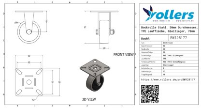 Dies ist eine Bockrolle aus Stahl. Die Rolle hat eine Bauhöhe von 70 mm. Die Felge besteht aus PP (Farbe RAL 7001 Silbergrau) und die Lauffläche aus TPE (RAL 7015 Schiefergrau). Das Rad hat einen Durchmesser von 50 mm und eine Breite von 20 mm. Die Nabenlänge beträgt 23 mm und die Achsbohrung hat einen Durchmesser von 8 mm. Die Tragfähigkeit beträgt 40 kilogram. Der Lagertyp: Gleitlager. Dieses Produkt finden Sie in unseren Kategorien: Kleine Bockrollen, Bockrollen 30 kg, Bockrollen 50 mm, Bockrollen. Marke: Novio.
