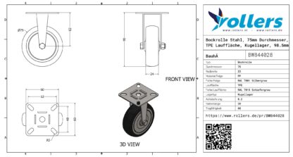 Dies ist eine Bockrolle aus Stahl. Die Bauhöhe ist 98.5 millimeter. Die Felge besteht aus PP (RAL 7001 Silbergrau ist die Farbe) und die Lauffläche aus TPE (Farbe RAL 7015 Schiefergrau). Das Rad hat einen Durchmesser von 75 millimeter und eine Breite von 23 millimeter. Die Nabenlänge beträgt 28 millimeter mit einem Achsloch von 6.2 millimeter. Das Rad hat eine Tragfähigkeit von 60 kilogram. Der Lagertyp: Kugellager. Rollers.de hat dieses Produkt in die folgenden Kategorien eingeteilt: Kleine Bockrollen, Bockrollen 50 kg, Bockrollen 75 mm, Bockrollen. Marke: Novio.