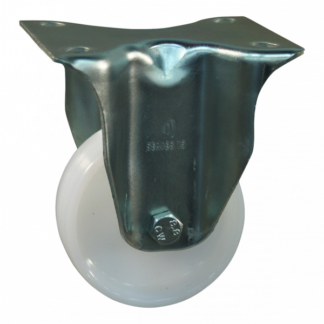 Dies ist eine Bockrolle aus Stahl. Die Bauhöhe ist 108 mm. Das Material des Rades ist PP (weiß). Das Rad hat einen Durchmesser von 80 mm und eine Breite von 30 mm. Die Nabenlänge beträgt 40 mm und die Achsbohrung hat einen Durchmesser von 12 mm. Die Tragfähigkeit beträgt 130 kg. Der Lagertyp: Rollenlager.