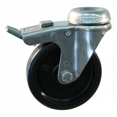 Lenkrolle Edelstahl, 100mm Durchmesser, PP Lauffläche, Gleitlager, Totalfeststeller, Nachlauf