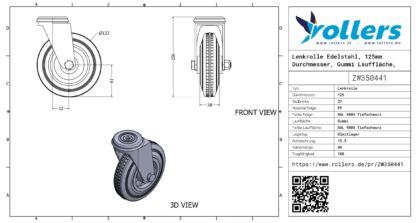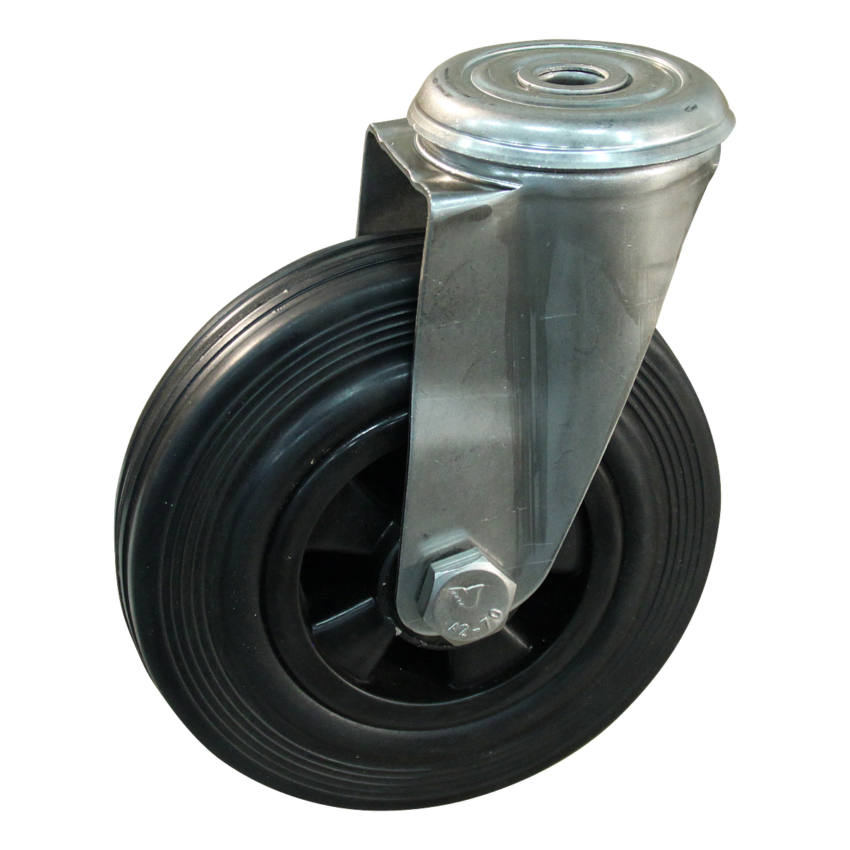 Dies ist eine Lenkrolle aus Edelstahl. Die Lenkrolle hat die folgende Befestigungsart: Bolzenloch. Die Rolle hat eine Bauhöhe von 155 mm. Das Material der Felge ist PP (RAL 9005 Tiefschwarz ist die Farbe) und der Lauffläche Gummi (RAL 9005 Tiefschwarz ist die Farbe). Das Rad hat einen Durchmesser von 125 mm und eine Breite von 37 mm. Die Nabenlänge beträgt 48 mm und die Achsbohrung hat einen Durchmesser von 15.5 mm. Das Rad hat eine Tragfähigkeit von 100 kg. Das Rad hat ein Gleitlager als Lagerung. Dieses Produkt ist in unserem Shop in folgenden Kategorien erhältlich: Gummiräder, Lenkrolle Edelstahl, Lenkrollen 125 mm, Gummi Lenkrollen, Lenkrollen 100 kg, Transportrollen, Lenkrollen ohne Bremse, Lenkrollen.