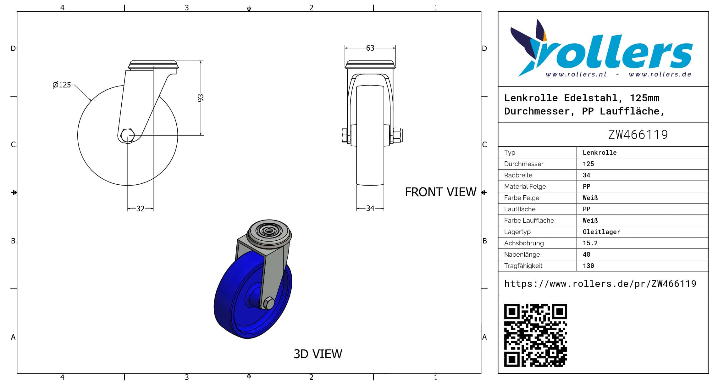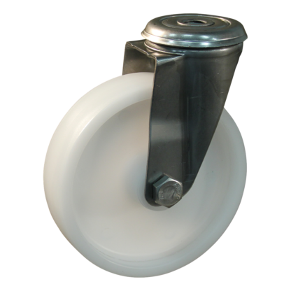 Dies ist eine Lenkrolle aus Edelstahl. Weise der Befestigung: Bolzenloch. Die Bauhöhe beträgt 155 millimeter. Die Felge besteht aus PP (Farbe weiß) und die Lauffläche aus PP (weiß). Das Rad hat einen Durchmesser von 125 millimeter und eine Breite von 34 millimeter. Die Nabenlänge beträgt 48 millimeter mit einem Achsloch von 15.2 millimeter. Die Tragfähigkeit beträgt 130 kg. Das Rad hat ein Gleitlager als Lagerung. Dieses Produkt finden Sie in unseren Kategorien: Lenkrolle Edelstahl, Lenkrollen 125 mm, Lenkrollen 100 kg, Transportrollen, Lenkrollen ohne Bremse, Lenkrollen.