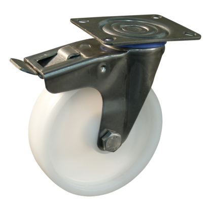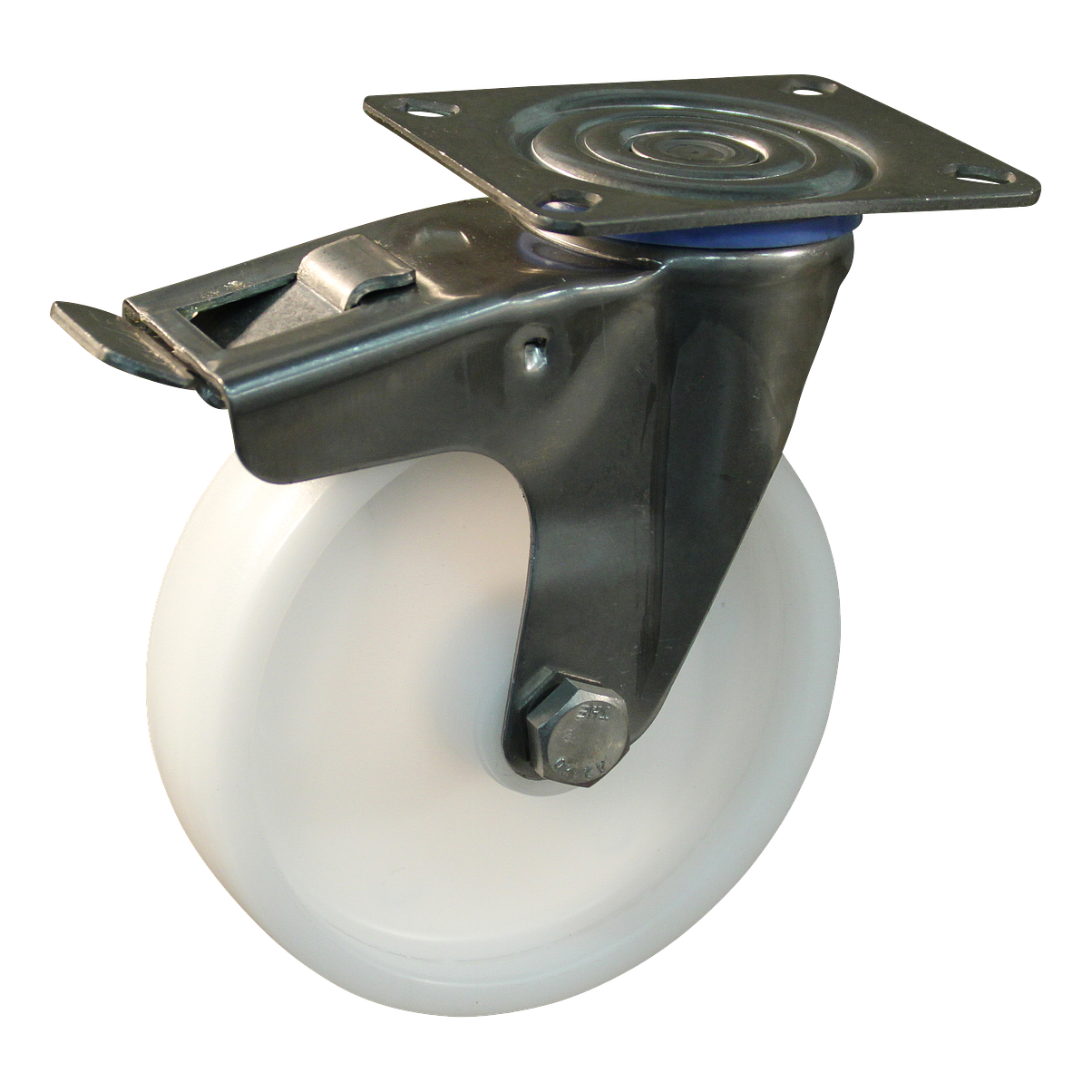 Dies ist eine Lenkrolle aus Edelstahl. Diese Rolle hat eine Totalfeststeller, Nachlauf. Die Lenkrolle hat die folgende Befestigungsart: Platte. Die Rolle hat eine Bauhöhe von 192 millimeter. Das ganze Rad besteht aus Polyamid (weiß ist die Farbe). Das Rad hat einen Durchmesser von 150 millimeter und eine Breite von 50 millimeter. Die Nabenlänge beträgt 60 millimeter und die Achsbohrung hat einen Durchmesser von 20.2 millimeter. Die Lenkrolle hat eine Tragfähigkeit von 300 kg. Der Lagertyp: Gleitlager. Dieses Produkt ist in unserem Shop in folgenden Kategorien erhältlich: Lenkrolle Edelstahl, Lenkrollen 300 kg, Lenkrollen 150 mm, Schwerlastrollen, Transportrollen, Nylon Rollen, Lenkrollen mit Bremse, Schwerlastlenkrollen, Lenkrollen.