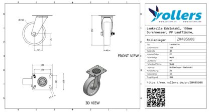 Dies ist eine Lenkrolle aus Edelstahl. Die Lenkrolle hat die folgende Befestigungsart: Platte. Die Bauhöhe ist 192 mm. Das Material des Rades ist PP (weiß). Das Rad hat einen Durchmesser von 150 mm und eine Breite von 40 mm. Die Nabenlänge beträgt 50 mm und die Achsbohrung hat einen Durchmesser von 20 mm. Das Rad hat eine Tragfähigkeit von 300 kilogram. Der Lagertyp: Rollenlager Edelstahl. Dieses Produkt finden Sie in unseren Kategorien: Lenkrolle Edelstahl, Lenkrollen 300 kg, Lenkrollen 150 mm, Schwerlastrollen, Transportrollen, Lenkrollen ohne Bremse, Schwerlastlenkrollen, Lenkrollen.