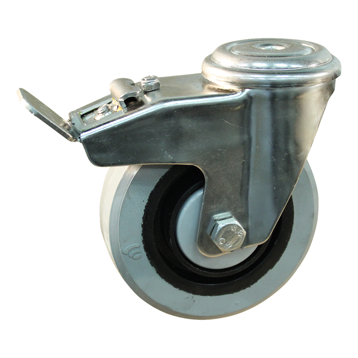 Dies ist eine Lenkrolle mit einem Gabel aus Edelstahl. Die Rolle hat eine Bremse des Typs Totalfeststeller, Nachlauf. Die Lenkrolle hat die folgende Befestigungsart: Bolzenloch. Die Bauhöhe ist 193 mm. Die Felge besteht aus Polyamid (Farbe RAL 9005 Tiefschwarz) und die Lauffläche aus Elastischer Gummi (RAL 7001 Silbergrau). Das Rad hat einen Durchmesser von 160 mm und eine Breite von 48 mm. Das Rad hat eine Tragfähigkeit von 300 kilo. Das Rad hat ein Kugellager Edelstahl als Lagerung. Rollers.de hat dieses Produkt in die folgenden Kategorien eingeteilt: Gummiräder, Lenkrolle Edelstahl, Lenkrollen 300 kg, Lenkrollen 160 mm, Schwerlastrollen, Gummi Lenkrollen, Transportrollen, Lenkrollen mit Bremse, Schwerlastlenkrollen, Lenkrollen.