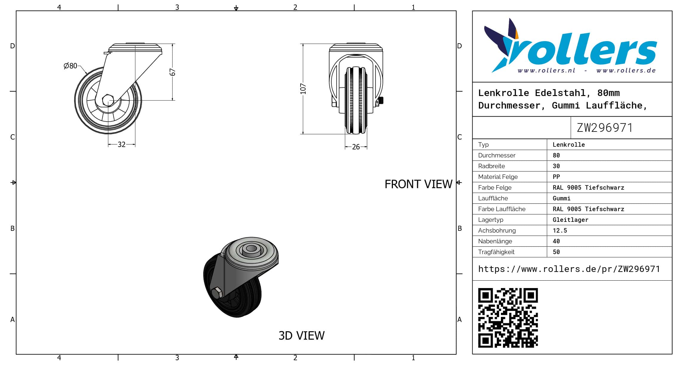 Dies ist eine Lenkrolle aus Edelstahl. Die Lenkrolle hat die folgende Befestigungsart: Bolzenloch. Die Bauhöhe ist 108 mm. Das Material der Felge ist PP (RAL 9005 Tiefschwarz) und der Lauffläche Gummi (RAL 9005 Tiefschwarz ist die Farbe). Das Rad hat einen Durchmesser von 80 mm und eine Breite von 30 mm. Die Nabenlänge beträgt 40 mm und die Achsbohrung hat einen Durchmesser von 12.5 mm. Die Lenkrolle hat eine Tragfähigkeit von 50 kilogram. Der Lagertyp: Gleitlager. Dieses Produkt finden Sie in unseren Kategorien: Gummiräder, Kleine Lenkrollen, Lenkrolle Edelstahl, Lenkrollen 50 kg, Lenkrollen 80 mm, Gummi Lenkrollen, Transportrollen, Lenkrollen ohne Bremse, Lenkrollen.
