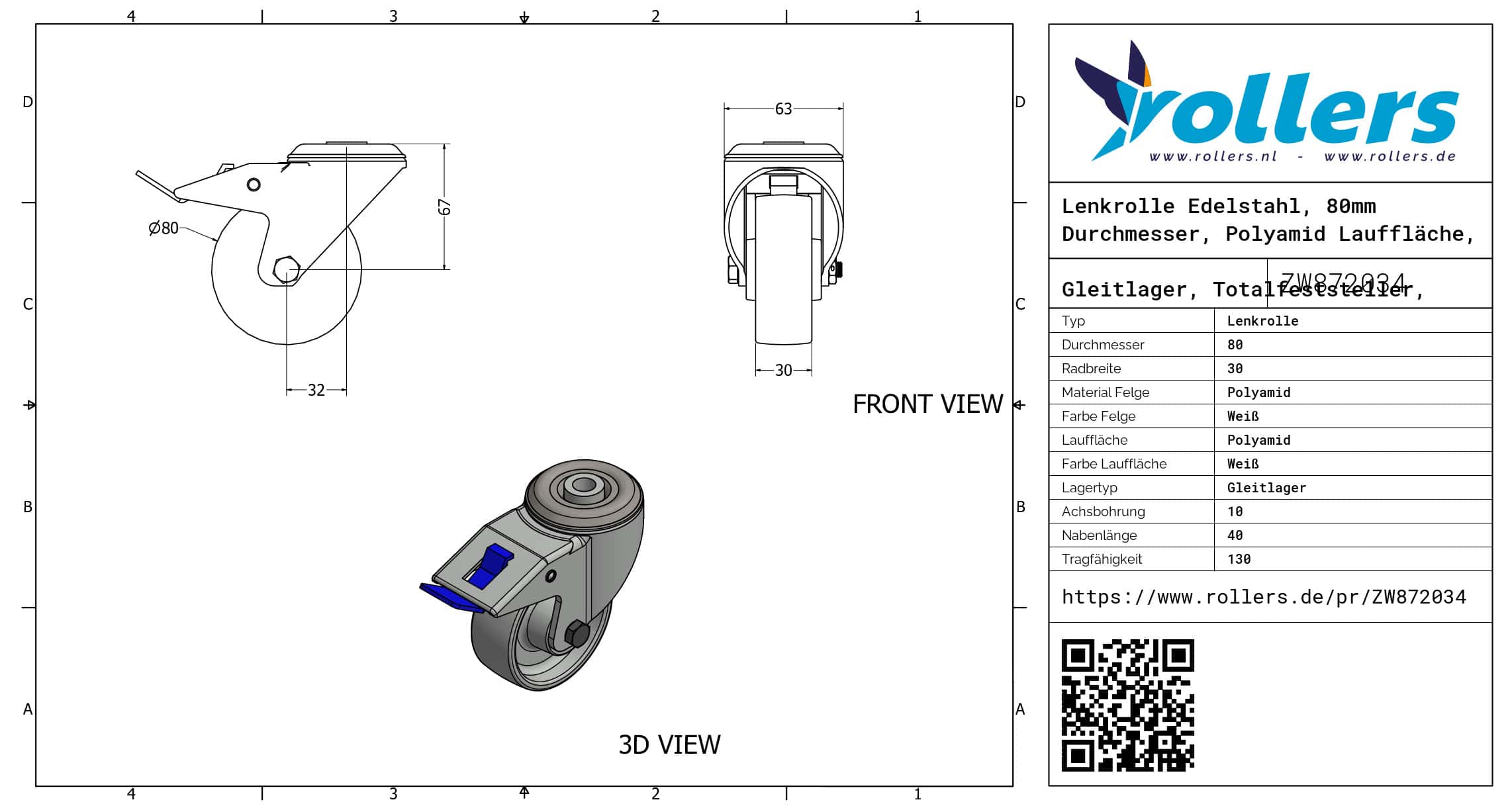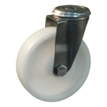 Diese Lenkrolle hat eine Gabel aus Edelstahl. Diese Rolle hat eine Totalfeststeller, Nachlauf. Dies kann mit Befestigingsart „Bolzenloch“ befestigt werden. Die Rolle hat eine Bauhöhe von 108 mm. Das Material der Felge ist Polyamid (weiß ist die Farbe) und der Lauffläche Polyamid (weiß). Das Rad hat einen Durchmesser von 80 mm und eine Breite von 30 mm. Die Nabenlänge beträgt 40 mm und die Achsbohrung hat einen Durchmesser von 10 mm. Das Rad hat eine Tragfähigkeit von 130 kg. Das Rad hat ein Gleitlager als Lagerung. Dieses Produkt ist in unserem Shop in folgenden Kategorien erhältlich: Kleine Lenkrollen mit Feststeller, Kleine Lenkrollen, Lenkrolle Edelstahl, Lenkrollen 80 mm, Lenkrollen 100 kg, Transportrollen, Nylon Rollen, Lenkrollen mit Bremse, Lenkrollen.