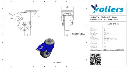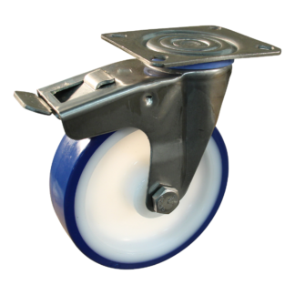 Dies ist eine Lenkrolle aus Edelstahl. Dies kann mit Befestigingsart „Platte“ befestigt werden. Die Bauhöhe ist 108 millimeter. Die Felge besteht aus Polyamid (weiß) und die Lauffläche aus PU (RAL 5003 Saphirblau). Das Rad hat einen Durchmesser von 80 millimeter und eine Breite von 30 millimeter. Die Nabenlänge beträgt 40 millimeter mit einem Achsloch von 12 millimeter. Die Lenkrolle hat eine Tragfähigkeit von 120 kilo. Der Lagertyp: Gleitlager. Dieses Produkt ist in unserem Shop in folgenden Kategorien erhältlich: Kleine Lenkrollen, Rollbehälter Rollen, Müllcontainer Rollen, Lenkrolle Edelstahl, Lenkrollen 80 mm, PU Rollen, Polyurethan Rollen, Lenkrollen 100 kg, Transportrollen, Lenkrollen ohne Bremse, Lenkrollen.