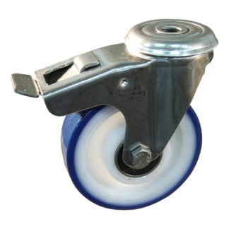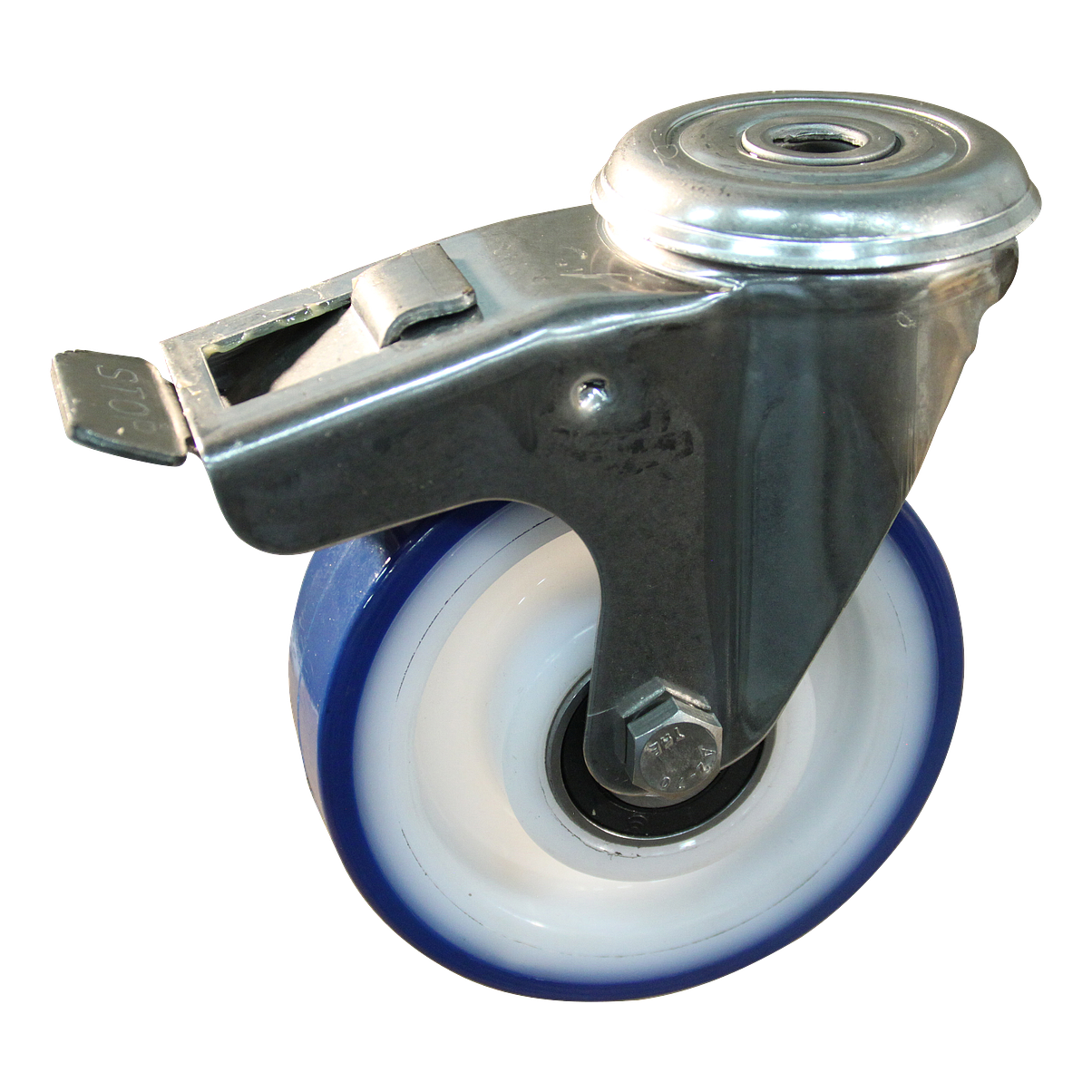 Dies ist eine Lenkrolle mit einem Gabel aus Edelstahl. Diese Rolle hat eine Totalfeststeller, Nachlauf. Die Lenkrolle hat die folgende Befestigungsart: Bolzenloch. Die Bauhöhe ist 108 millimeter. Das Material der Felge ist Polyamid (Farbe weiß) und der Lauffläche PU (RAL 5003 Saphirblau ist die Farbe). Das Rad hat einen Durchmesser von 80 millimeter und eine Breite von 30 millimeter. Das Rad hat eine Tragfähigkeit von 120 kg. Das Rad hat ein Kugellager Edelstahl als Lagerung. Rollers.de hat dieses Produkt in die folgenden Kategorien eingeteilt: Kleine Lenkrollen mit Feststeller, Kleine Lenkrollen, Lenkrolle Edelstahl, Lenkrollen 80 mm, PU Rollen, Polyurethan Rollen, Lenkrollen 100 kg, Transportrollen, Lenkrollen mit Bremse, Lenkrollen.