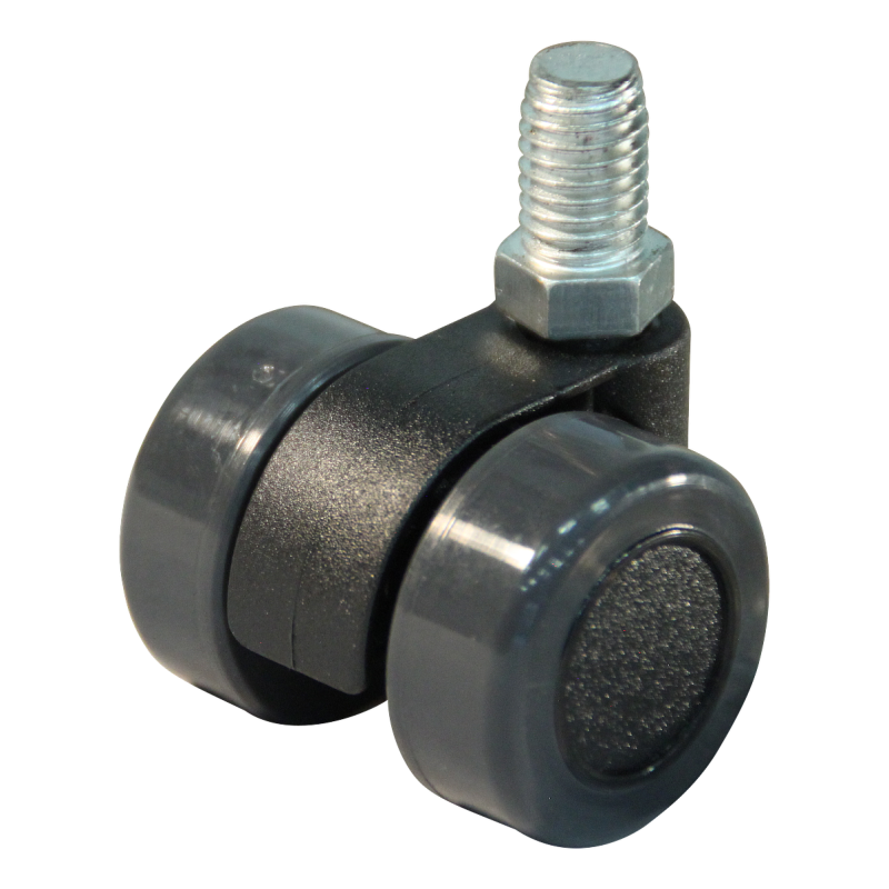 Diese Lenkrolle hat eine Gabel aus Kunststoff. Weise der Befestigung: Gewindestift. Die Bauhöhe ist 55 mm. Das Material der Felge ist Polyamid (schwarz) und der Lauffläche TPE (schwarz ist die Farbe). Das Rad hat einen Durchmesser von 36 mm und eine Breite von 49 mm. Das Rad hat eine Tragfähigkeit von 50 kilo. Der Lagertyp: Gleitlager. Marke: Novio.