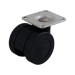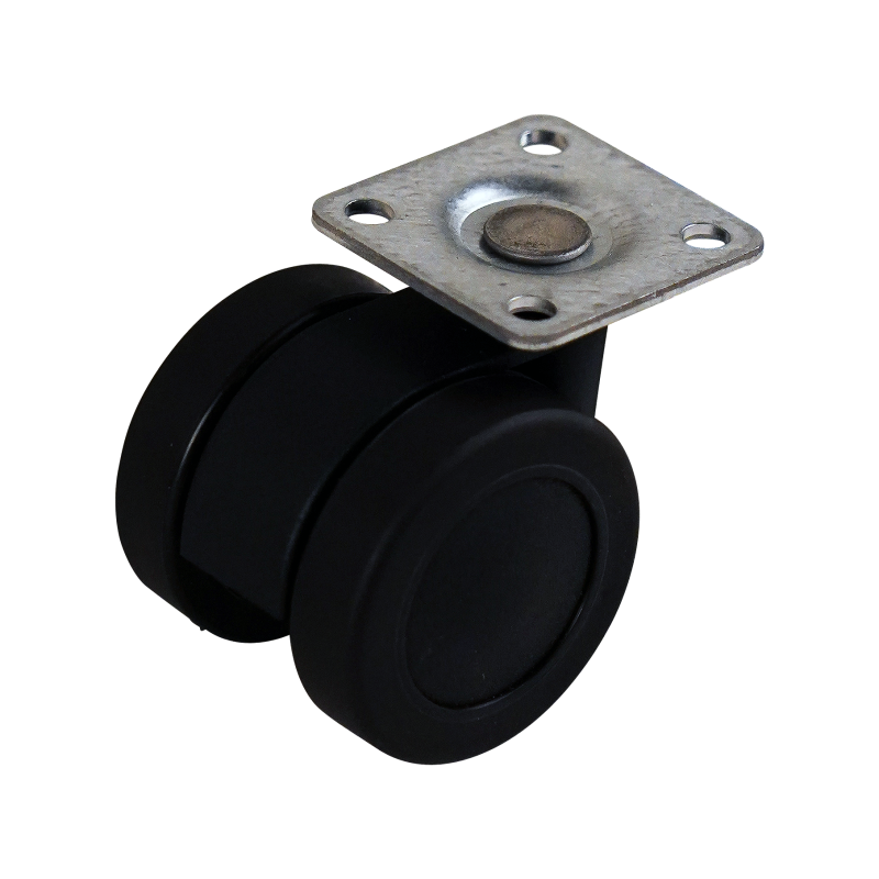 Dies ist eine Lenkrolle aus Kunststoff. Dies kann mit Befestigingsart „Platte“ befestigt werden. Die Bauhöhe beträgt 64 mm. Das Material der Felge ist Polyamid (schwarz) und der Lauffläche PU (schwarz). Das Rad hat einen Durchmesser von 42 mm und eine Breite von 43 mm. Die Tragfähigkeit beträgt 50 kilo. Der Lagertyp: Gleitlager. Marke: Maier.