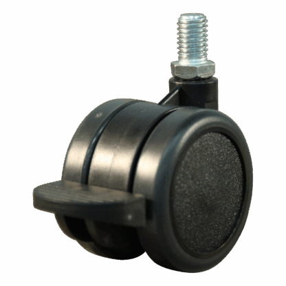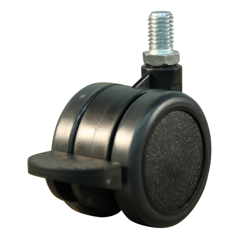 Diese Lenkrolle hat eine Gabel aus aus Kunststoff. Diese Rolle hat eine Radbremse. Die Rolle hat die folgende Befestigungsart: Gewindestift. Die Rolle hat eine Bauhöhe von 81 mm. Die Felge besteht aus Polyamid (schwarz ist die Farbe) und die Lauffläche aus PU (Grau). Das Rad hat einen Durchmesser von 50 mm und eine Breite von 43 mm. Die Tragfähigkeit beträgt 50 kg. Das Rad hat ein Gleitlager als Lagerung. Marke: Novio.