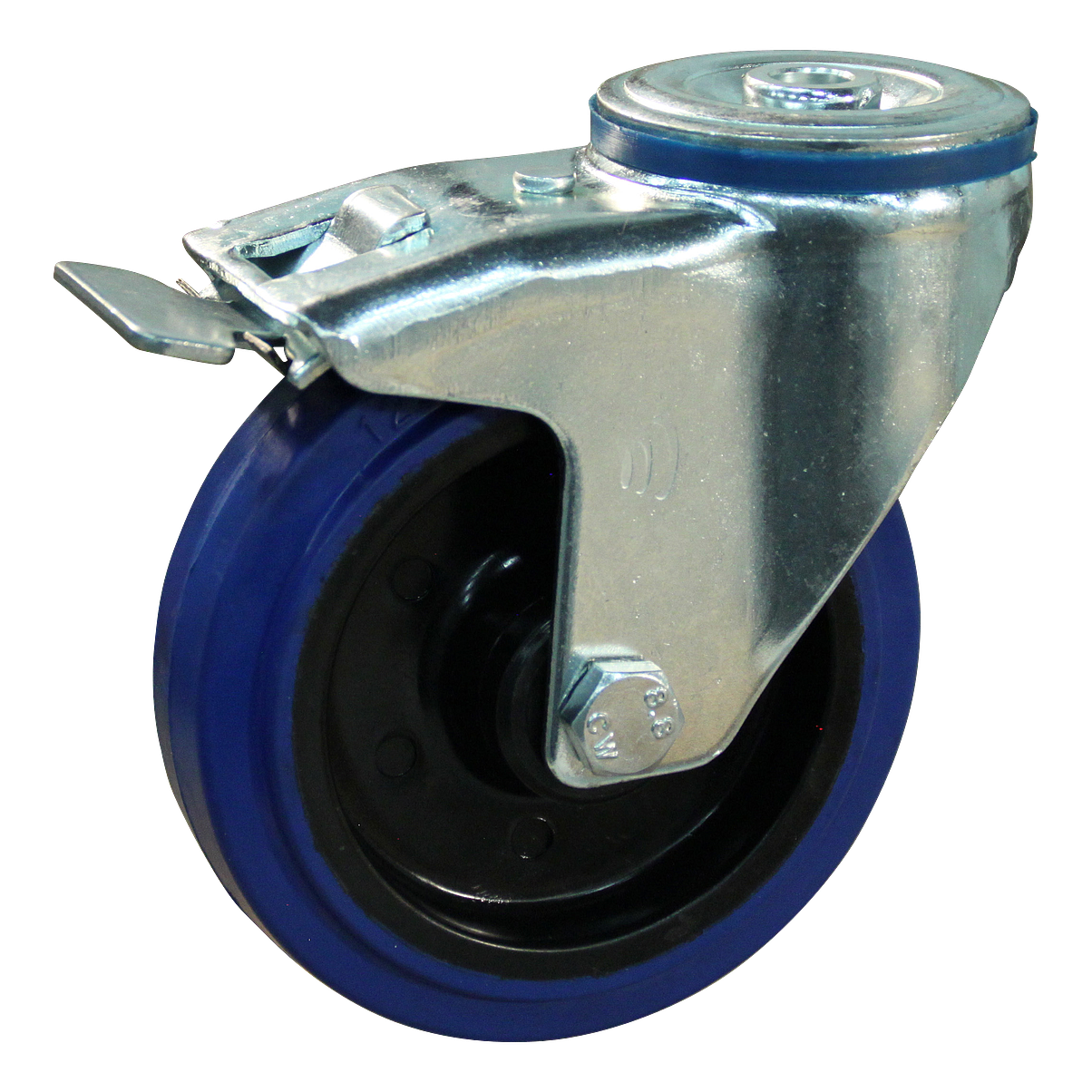 Dies ist eine Lenkrolle aus Stahl. Die Rolle hat eine Bremse des Typs Totalfeststeller, Nachlauf. Die Lenkrolle hat die folgende Befestigungsart: Bolzenloch. Die Bauhöhe beträgt 125 mm. Das Material der Felge ist Polyamid (Farbe RAL 9005 Tiefschwarz) und der Lauffläche Elastischer Gummi (RAL 5010 Enzianblau). Das Rad hat einen Durchmesser von 100 mm und eine Breite von 36 mm. Die Nabenlänge beträgt 40 mm mit einem Achsloch von 12 mm. Das Rad hat eine Tragfähigkeit von 150 kilogram. Der Lagertyp: Rollenlager. Dieses Produkt finden Sie in unseren Kategorien: Flightcase-Räder, Gummiräder, Lenkrollen 150 kg, Gummi Lenkrollen, Lenkrollen 100 mm, Transportrollen, Lenkrollen mit Bremse, Lenkrollen.