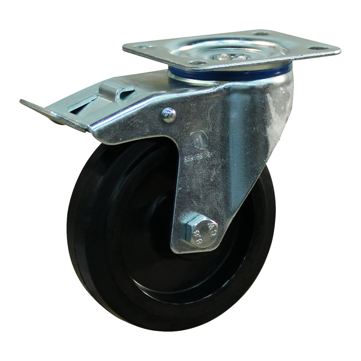 Diese Lenkrolle hat eine Gabel aus Stahl. Diese Rolle hat eine Totalfeststeller, Nachlauf. Die Lenkrolle hat die folgende Befestigungsart: Platte. Die Bauhöhe beträgt 128 mm. Die Felge besteht aus Polyamid (RAL 9005 Tiefschwarz ist die Farbe) und die Lauffläche aus Elastischer Gummi (RAL 9005 Tiefschwarz ist die Farbe). Das Rad hat einen Durchmesser von 100 mm und eine Breite von 36 mm. Die Nabenlänge beträgt 40 mm und die Achsbohrung hat einen Durchmesser von 12 mm. Die Lenkrolle hat eine Tragfähigkeit von 150 kilogram. Das Rad hat ein Rollenlager als Lagerung. Dieses Produkt finden Sie in unseren Kategorien: Gummiräder, Rollbehälter Rollen, Müllcontainer Rollen, Lenkrollen 150 kg, Gummi Lenkrollen, Lenkrollen 100 mm, Transportrollen, Lenkrollen mit Bremse, Lenkrollen.