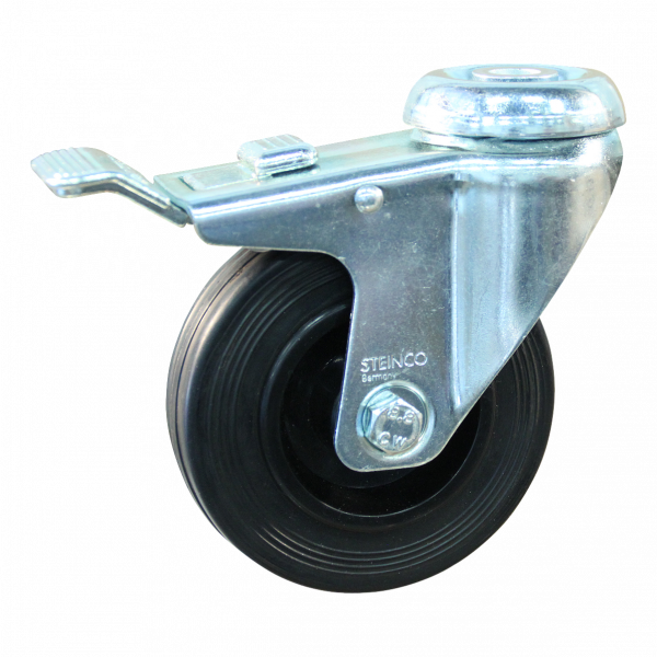 Diese Lenkrolle hat eine Gabel aus Stahl. Die Bremse ist vom Typ: Totalfeststeller, Nachlauf. Die Rolle hat die folgende Befestigungsart: Bolzenloch. Die Bauhöhe ist 132 millimeter. Die Felge besteht aus PP (RAL 9005 Tiefschwarz ist die Farbe) und die Lauffläche aus Gummi (RAL 9005 Tiefschwarz). Das Rad hat einen Durchmesser von 100 millimeter und eine Breite von 30 millimeter. Die Tragfähigkeit beträgt 70 kilo. Das Rad hat ein Rollenlager als Lagerung. Marke: Novio.