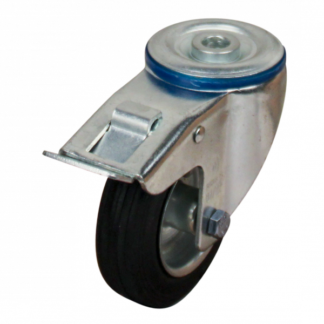 Dies ist eine Lenkrolle aus Stahl. Die Bremse ist vom Typ: Totalfeststeller, Nachlauf. Weise der Befestigung: Bolzenloch. Die Rolle hat eine Bauhöhe von 125 mm. Die Felge besteht aus Stahl (Verzinkt ist die Farbe) und die Lauffläche aus Gummi (RAL 9005 Tiefschwarz). Das Rad hat einen Durchmesser von 100 mm und eine Breite von 30 mm. Die Nabenlänge beträgt 42 mm mit einem Achsloch von 12 mm. Die Lenkrolle hat eine Tragfähigkeit von 70 kilo. Das Rad hat ein Rollenlager als Lagerung. Dieses Produkt ist in unserem Shop in folgenden Kategorien erhältlich: Gummiräder, Lenkrollen 50 kg, Gummi Lenkrollen, Lenkrollen 100 mm, Transportrollen, Lenkrollen mit Bremse, Lenkrollen.