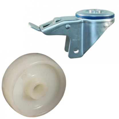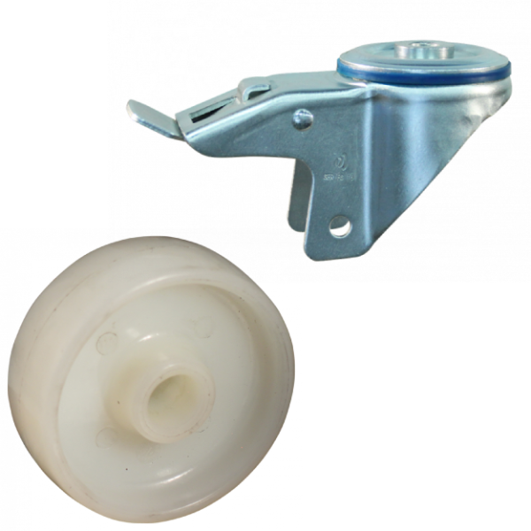 Lenkrolle Stahl, 100mm Durchmesser, PP Lauffläche, Rollenlager, Totalfeststeller, Nachlauf