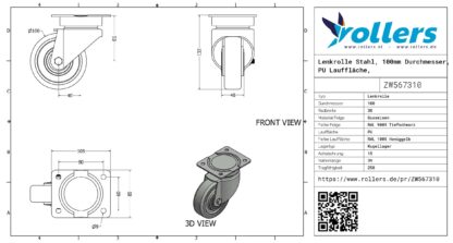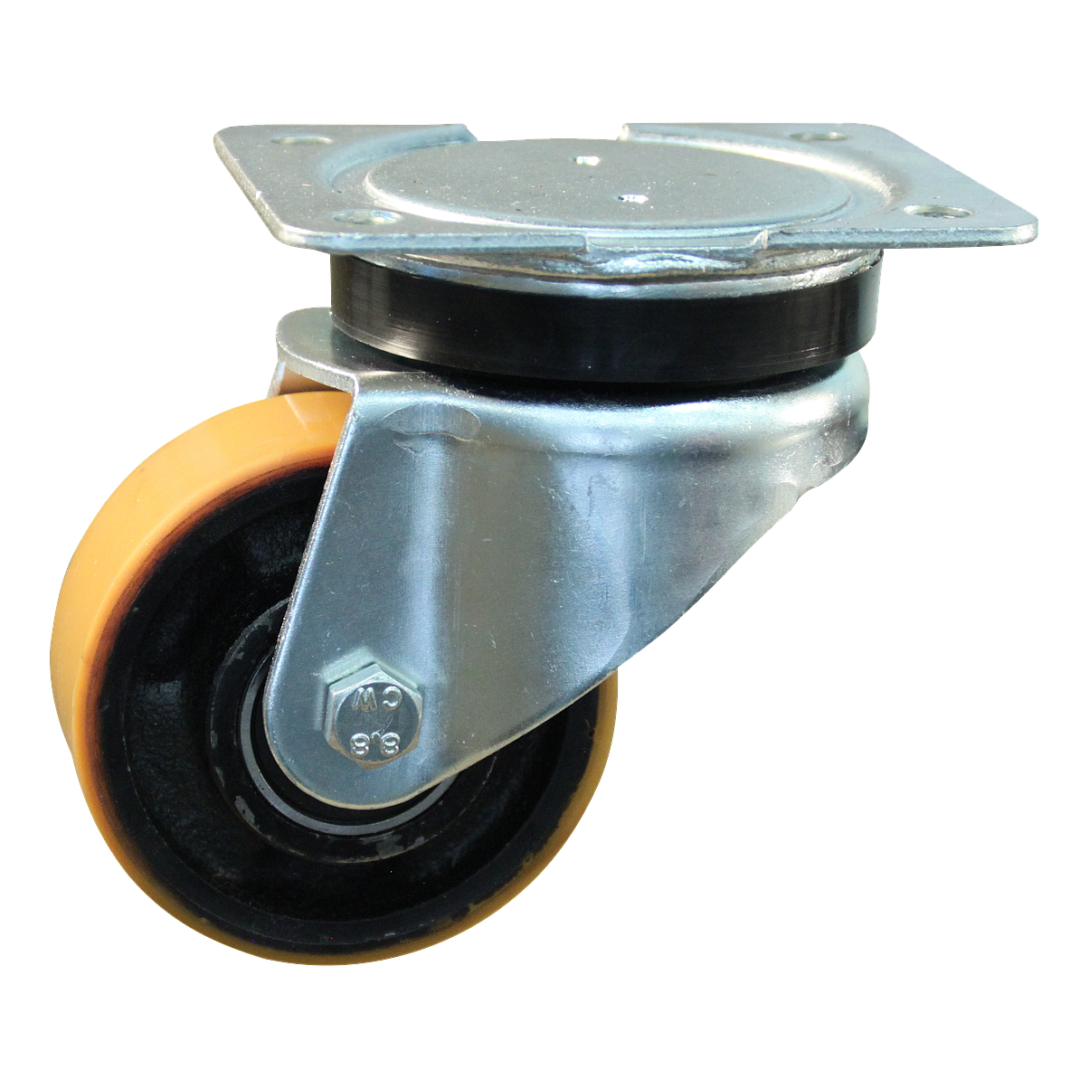 Lenkrolle Stahl, 100mm Durchmesser, PU Lauffläche, Kugellager