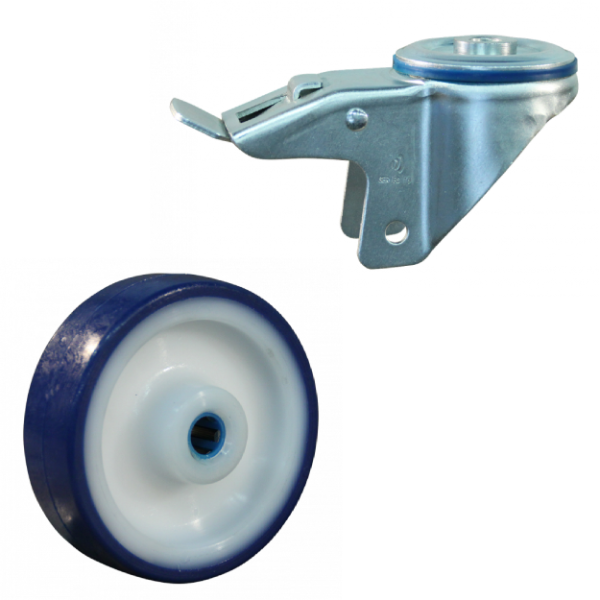 Dies ist eine Lenkrolle mit einem Gabel aus Stahl. Diese Rolle hat eine Totalfeststeller, Nachlauf. Die Lenkrolle hat die folgende Befestigungsart: Bolzenloch. Die Rolle hat eine Bauhöhe von 125 mm. Das Material der Felge ist Polyamid (weiß ist die Farbe) und der Lauffläche PU (Farbe RAL 5003 Saphirblau). Das Rad hat einen Durchmesser von 100 mm und eine Breite von 30 mm. Die Nabenlänge beträgt 40 mm und die Achsbohrung hat einen Durchmesser von 12 mm. Die Lenkrolle hat eine Tragfähigkeit von 150 kilogram. Das Rad hat ein Rollenlager als Lagerung. Rollers.de hat dieses Produkt in die folgenden Kategorien eingeteilt: Lenkrollen 150 kg, PU Rollen, Polyurethan Rollen, Lenkrollen 100 mm, Transportrollen, Lenkrollen mit Bremse, Lenkrollen.