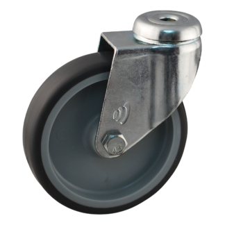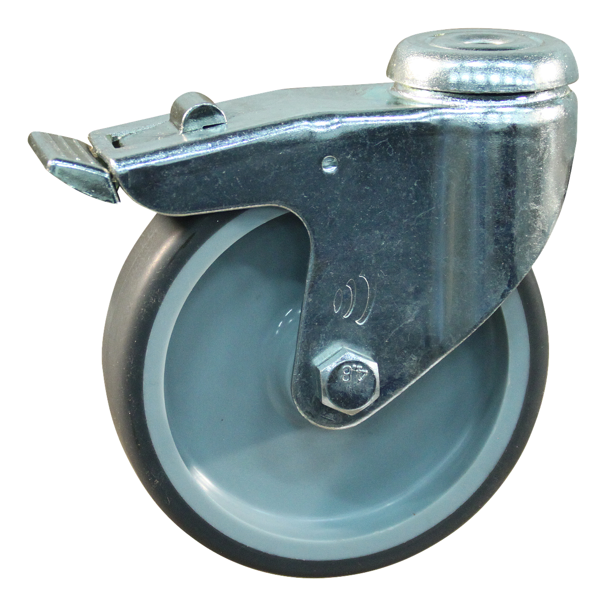 Dies ist eine Lenkrolle aus Stahl. Die Bremse ist vom Typ: Totalfeststeller, Nachlauf. Weise der Befestigung: Bolzenloch. Die Bauhöhe beträgt 121 mm. Die Felge besteht aus PP (RAL 7001 Silbergrau ist die Farbe) und die Lauffläche aus TPE (Farbe RAL 7015 Schiefergrau). Das Rad hat einen Durchmesser von 100 mm und eine Breite von 25 mm. Das Rad hat eine Tragfähigkeit von 70 kilo. Das Rad hat ein Gleitlager als Lagerung. Dieses Produkt finden Sie in unseren Kategorien: Lenkrollen 50 kg, Lenkrollen 100 mm, Lenkrollen mit Bremse, Lenkrollen. Marke: Novio.