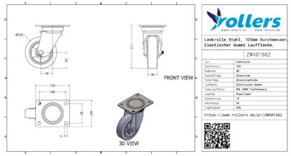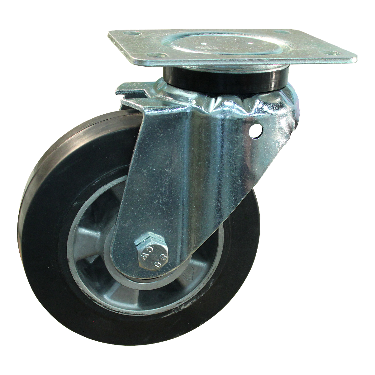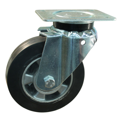 Dies ist eine Lenkrolle aus Stahl. Die Lenkrolle hat die folgende Befestigungsart: Platte. Die Bauhöhe ist 171 mm. Die Felge besteht aus Aluminium und die Lauffläche aus Elastischer Gummi (RAL 9005 Tiefschwarz). Das Rad hat einen Durchmesser von 125 mm und eine Breite von 40 mm. Die Nabenlänge beträgt 50 mm und die Achsbohrung hat einen Durchmesser von 15 mm. Die Tragfähigkeit beträgt 250 kilo. Der Lagertyp: Kugellager. Dieses Produkt finden Sie in unseren Kategorien: Gummiräder, Rollbehälter Rollen, Müllcontainer Rollen, Schwerlastlenkrollen mit Axiallager, Lenkrollen 200 kg, Lenkrollen 125 mm, Gummi Lenkrollen, Transportrollen, Lenkrollen ohne Bremse, Lenkrollen.