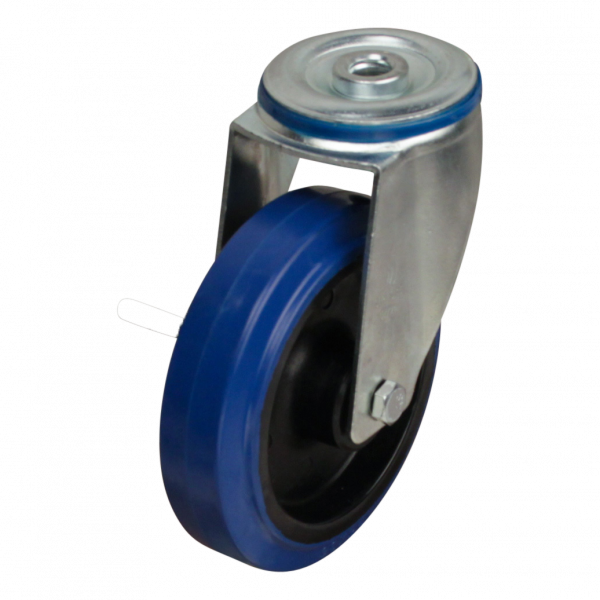 Lenkrolle Stahl, 125mm Durchmesser, Elastischer Gummi Lauffläche, Rollenlager