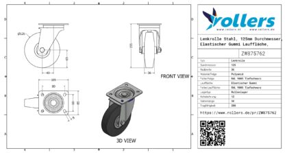 Diese Lenkrolle hat eine Gabel aus Stahl. Die Lenkrolle hat die folgende Befestigungsart: Platte. Die Bauhöhe beträgt 154 mm. Das Material der Felge ist Polyamid (RAL 9005 Tiefschwarz) und der Lauffläche Elastischer Gummi (RAL 9005 Tiefschwarz). Das Rad hat einen Durchmesser von 125 mm und eine Breite von 36 mm. Die Nabenlänge beträgt 50 mm mit einem Achsloch von 12 mm. Das Rad hat eine Tragfähigkeit von 200 kilo. Der Lagertyp: Rollenlager. Dieses Produkt ist in unserem Shop in folgenden Kategorien erhältlich: Gummiräder, Rollbehälter Rollen, Müllcontainer Rollen, Lenkrollen 200 kg, Lenkrollen 125 mm, Gummi Lenkrollen, Transportrollen, Lenkrollen ohne Bremse, Lenkrollen.