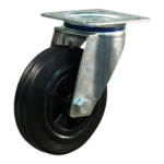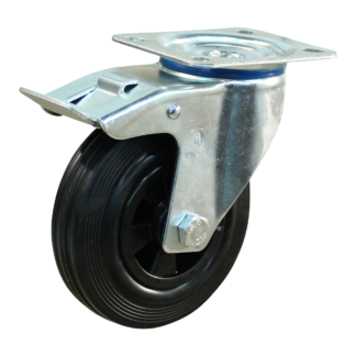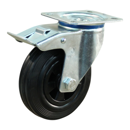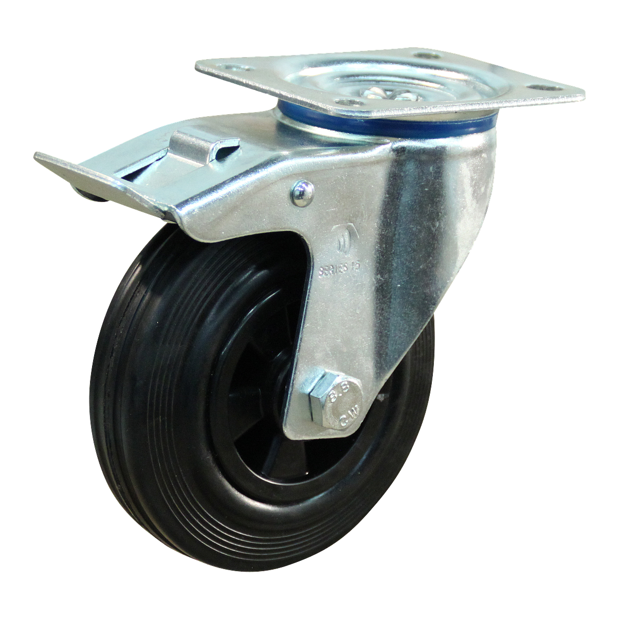 Lenkrolle Stahl, 125mm Durchmesser, Gummi Lauffläche, Rollenlager, Totalfeststeller, Nachlauf