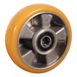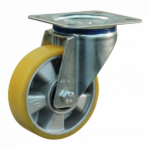 Lenkrolle Stahl, 125mm Durchmesser, PU Lauffläche, Kugellager, Totalfeststeller, Nachlauf, 40mm Radbreite