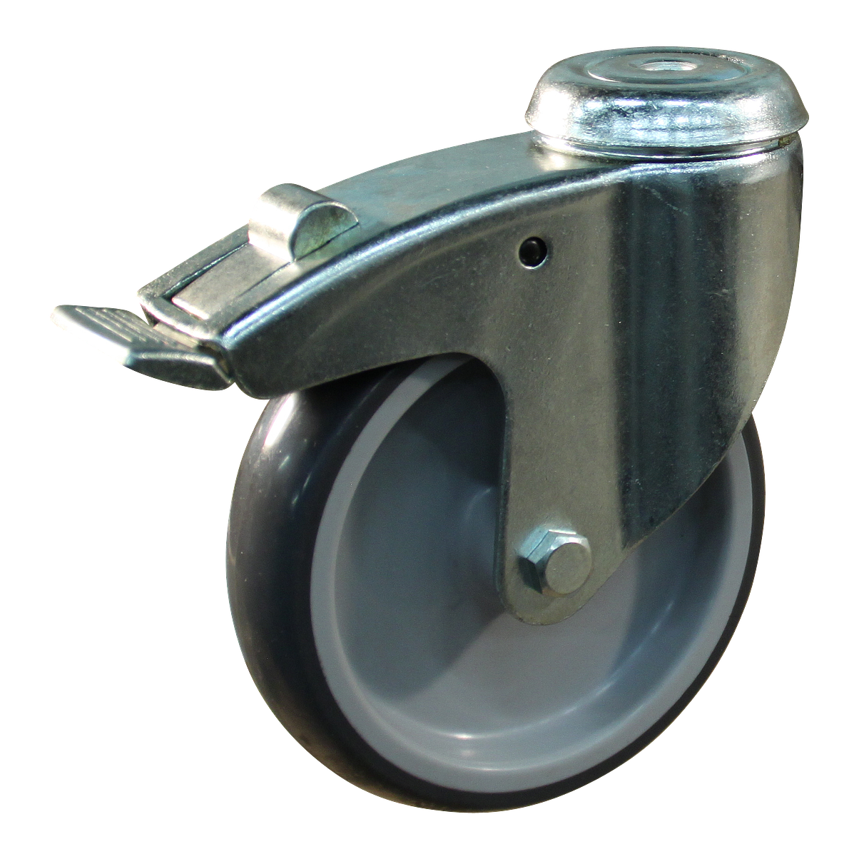 Diese Lenkrolle hat eine Gabel aus Stahl. Die Bremse ist vom Typ: Totalfeststeller, Nachlauf. Dies kann mit Befestigingsart „Bolzenloch“ befestigt werden. Die Rolle hat eine Bauhöhe von 160 millimeter. Das Material der Felge ist PP (RAL 7001 Silbergrau ist die Farbe) und der Lauffläche TPE (Farbe RAL 7015 Schiefergrau). Das Rad hat einen Durchmesser von 125 millimeter und eine Breite von 32 millimeter. Die Lenkrolle hat eine Tragfähigkeit von 80 kg. Der Lagertyp: Gleitlager. Rollers.de hat dieses Produkt in die folgenden Kategorien eingeteilt: Lenkrollen 50 kg, Lenkrollen 125 mm, Lenkrollen mit Bremse, Lenkrollen. Marke: Novio.