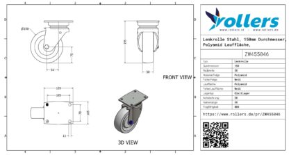 Diese Lenkrolle hat eine Gabel aus Stahl. Die Lenkrolle hat die folgende Befestigungsart: Platte. Die Bauhöhe beträgt 195 millimeter. Das ganze Rad besteht aus Polyamid (weiß). Das Rad hat einen Durchmesser von 150 millimeter und eine Breite von 50 millimeter. Die Nabenlänge beträgt 58 millimeter und die Achsbohrung hat einen Durchmesser von 20 millimeter. Das Rad hat eine Tragfähigkeit von 800 kg. Das Rad hat ein Gleitlager als Lagerung. Dieses Produkt ist in unserem Shop in folgenden Kategorien erhältlich: Schwerlastlenkrollen mit Axiallager, Lenkrollen 800 kg, Lenkrollen 150 mm, Schwerlastrollen, Transportrollen, Nylon Rollen, Lenkrollen ohne Bremse, Schwerlastlenkrollen, Lenkrollen.
