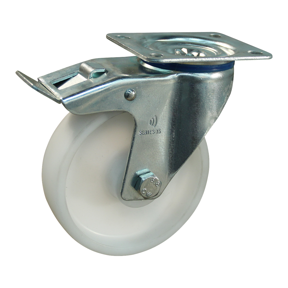 Dies ist eine Lenkrolle mit einem Gabel aus Stahl. Diese Rolle hat eine Totalfeststeller, Nachlauf. Dies kann mit Befestigingsart „Platte“ befestigt werden. Die Bauhöhe ist 190 mm. Das Material des Rades ist PP (Farbe weiß). Das Rad hat einen Durchmesser von 150 mm und eine Breite von 50 mm. Die Nabenlänge beträgt 60 mm mit einem Achsloch von 30 mm. Die Tragfähigkeit beträgt 300 kilogram. Der Lagertyp: Rollenlager. Dieses Produkt finden Sie in unseren Kategorien: Lenkrollen 300 kg, Lenkrollen 150 mm, Schwerlastrollen, Transportrollen, Lenkrollen mit Bremse, Schwerlastlenkrollen, Lenkrollen.