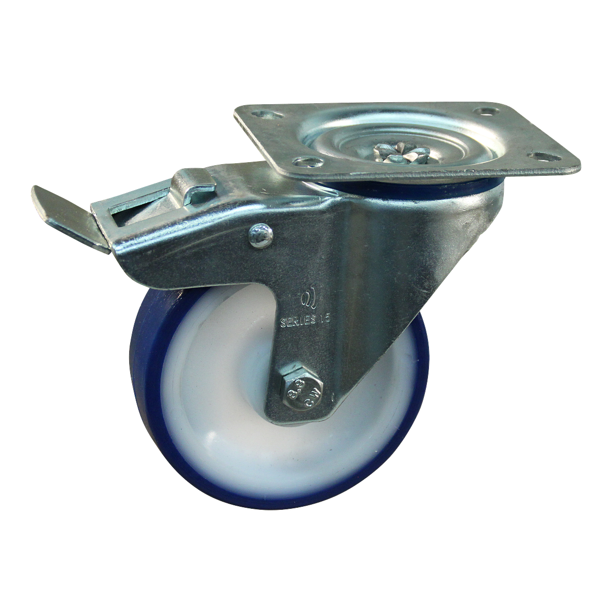 Lenkrolle Stahl, 150mm Durchmesser, PU Lauffläche, Gleitlager, Totalfeststeller, Nachlauf