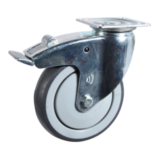 Lenkrolle Stahl, 150mm Durchmesser, TPE Lauffläche, Kugellager, Totalfeststeller, Nachlauf