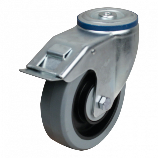 Lenkrolle Stahl, 160mm Durchmesser, Elastischer Gummi Lauffläche, Kugellager, Totalfeststeller, Nachlauf