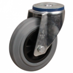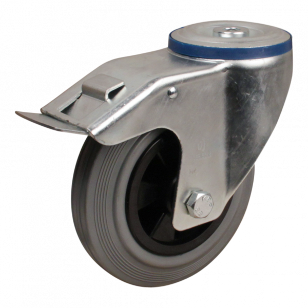Diese Lenkrolle hat eine Gabel aus Stahl. Die Rolle hat eine Bremse des Typs Totalfeststeller, Nachlauf. Die Lenkrolle hat die folgende Befestigungsart: Bolzenloch. Die Bauhöhe ist 190 millimeter. Die Felge besteht aus PP (RAL 9005 Tiefschwarz ist die Farbe) und die Lauffläche aus Gummi (Farbe RAL 7001 Silbergrau). Das Rad hat einen Durchmesser von 160 millimeter und eine Breite von 40 millimeter. Die Nabenlänge beträgt 60 millimeter mit einem Achsloch von 20 millimeter. Die Lenkrolle hat eine Tragfähigkeit von 135 kg. Der Lagertyp: Gleitlager. Dieses Produkt finden Sie in unseren Kategorien: Gummiräder, Lenkrollen 160 mm, Gummi Lenkrollen, Lenkrollen 100 kg, Transportrollen, Lenkrollen mit Bremse, Lenkrollen.