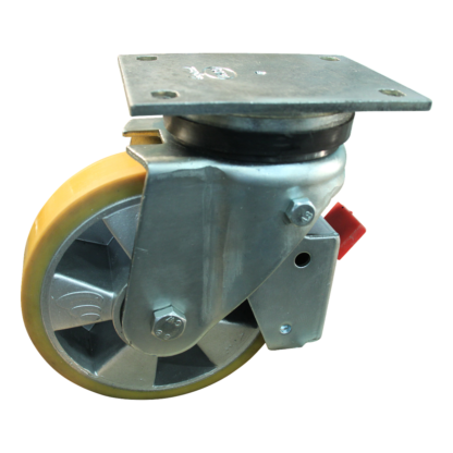 Dies ist eine Lenkrolle aus Stahl. Diese Rolle hat eine Radbremse. Dies kann mit Befestigingsart „Platte“ befestigt werden. Die Bauhöhe beträgt 207 mm. Das Material der Felge ist Aluminium und der Lauffläche PU (Farbe RAL 1005 Honiggelb). Das Rad hat einen Durchmesser von 175 mm und eine Breite von 50 mm. Die Tragfähigkeit beträgt 600 kilo. Der Lagertyp: Kugellager. Rollers.de hat dieses Produkt in die folgenden Kategorien eingeteilt: Rollbehälter Rollen, Müllcontainer Rollen, Schwerlastlenkrollen mit Axiallager, Lenkrollen 500 kg, Schwerlastrollen, Lenkrollen 175 mm, PU Rollen, Polyurethan Rollen, Transportrollen, Lenkrollen mit Bremse, Schwerlastlenkrollen, Lenkrollen.