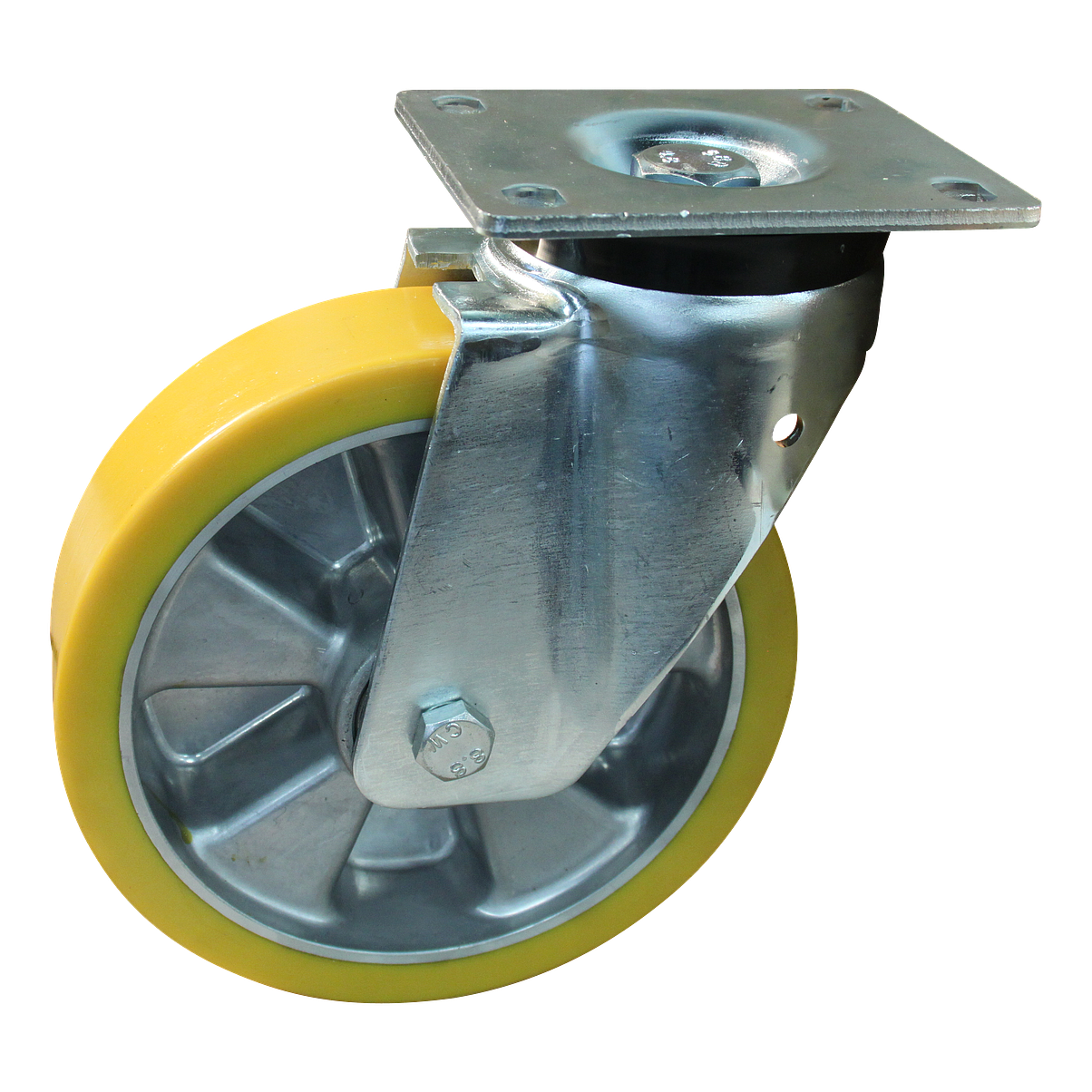Dies ist eine Lenkrolle mit einem Gabel aus Stahl. Weise der Befestigung: Platte. Die Rolle hat eine Bauhöhe von 232 millimeter. Das Material der Felge ist Aluminium und der Lauffläche PU (RAL 1005 Honiggelb ist die Farbe). Das Rad hat einen Durchmesser von 175 millimeter und eine Breite von 50 millimeter. Die Tragfähigkeit beträgt 600 kilogram. Das Rad hat ein Kugellager als Lagerung. Dieses Produkt ist in unserem Shop in folgenden Kategorien erhältlich: Rollbehälter Rollen, Müllcontainer Rollen, Lenkrollen 500 kg, Schwerlastrollen, Lenkrollen 175 mm, PU Rollen, Polyurethan Rollen, Transportrollen, Lenkrollen ohne Bremse, Schwerlastlenkrollen, Lenkrollen.