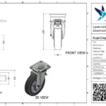Lenkrolle Stahl, 200mm Durchmesser, Elastischer Gummi Lauffläche, Kugellager, Totalfeststeller, Vorlauf